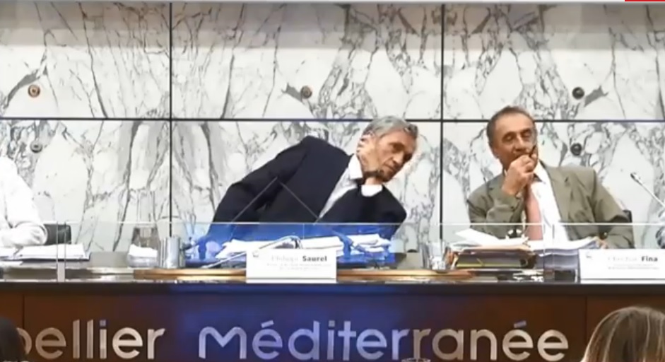 « Je suis libéré sur le pacte de confiance des maires. C'est fini, ils m'ont donné les pleins pouvoirs, ils m’ont donné les pleins pouvoirs. Ils sont fous. J’ai économisé 5 millions d’euros ce soir », « ce soir, il faut les fatiguer, les user… (…) Je vais leur faire sept heures de conseil, je vais les tuer ». Ce sont les mots prononcés hors micro par Philippe Saurel, maire de Montpellier et Président de Montpellier Méditerranée Métropole, mais bien entendu par toutes et tous, lors du conseil de cette dernière collectivité filmé et retransmis en direct sur la Toile, mercredi soir.