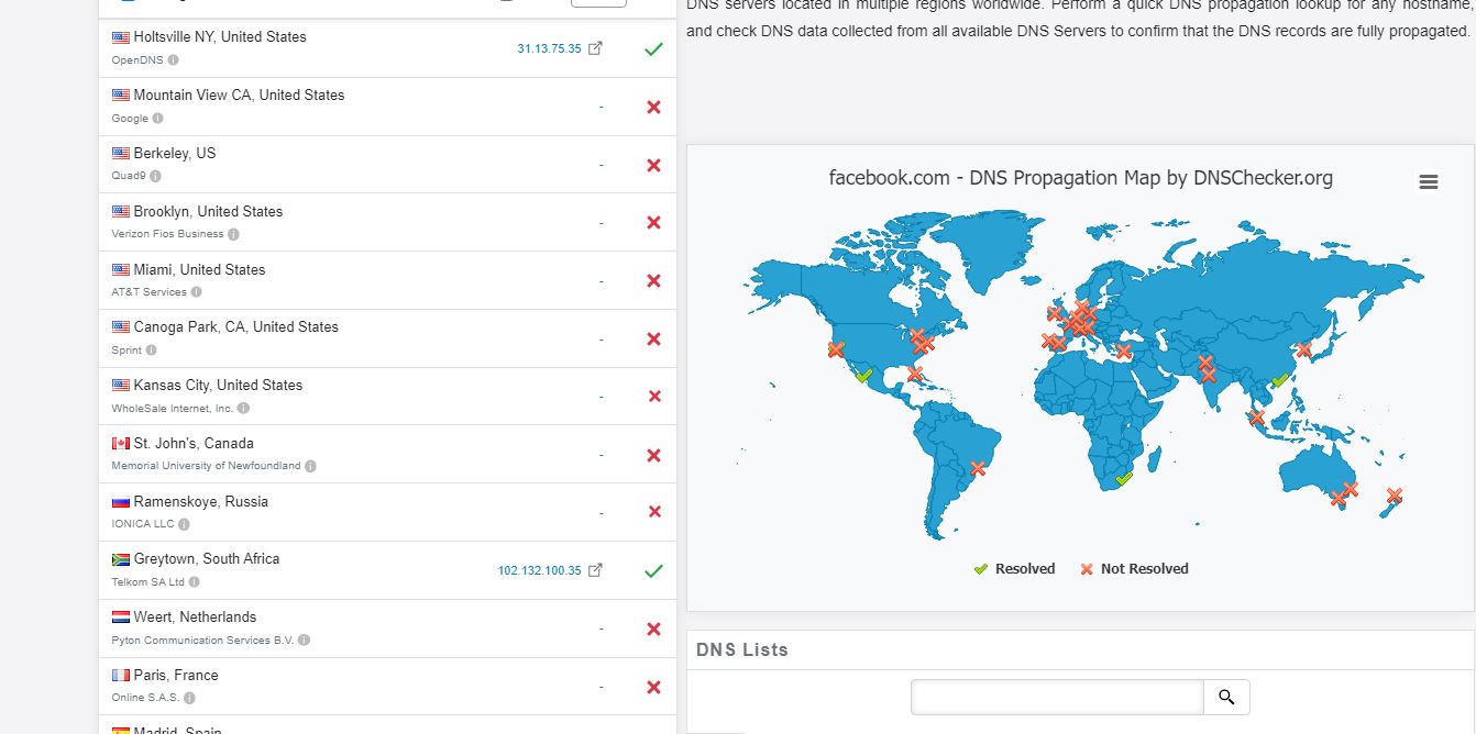 Le réseau social Facebook n'était plus accessible en fin de journée de mardi. Cette panne est apparemment mondiale comme l'atteste le site DNS checker.