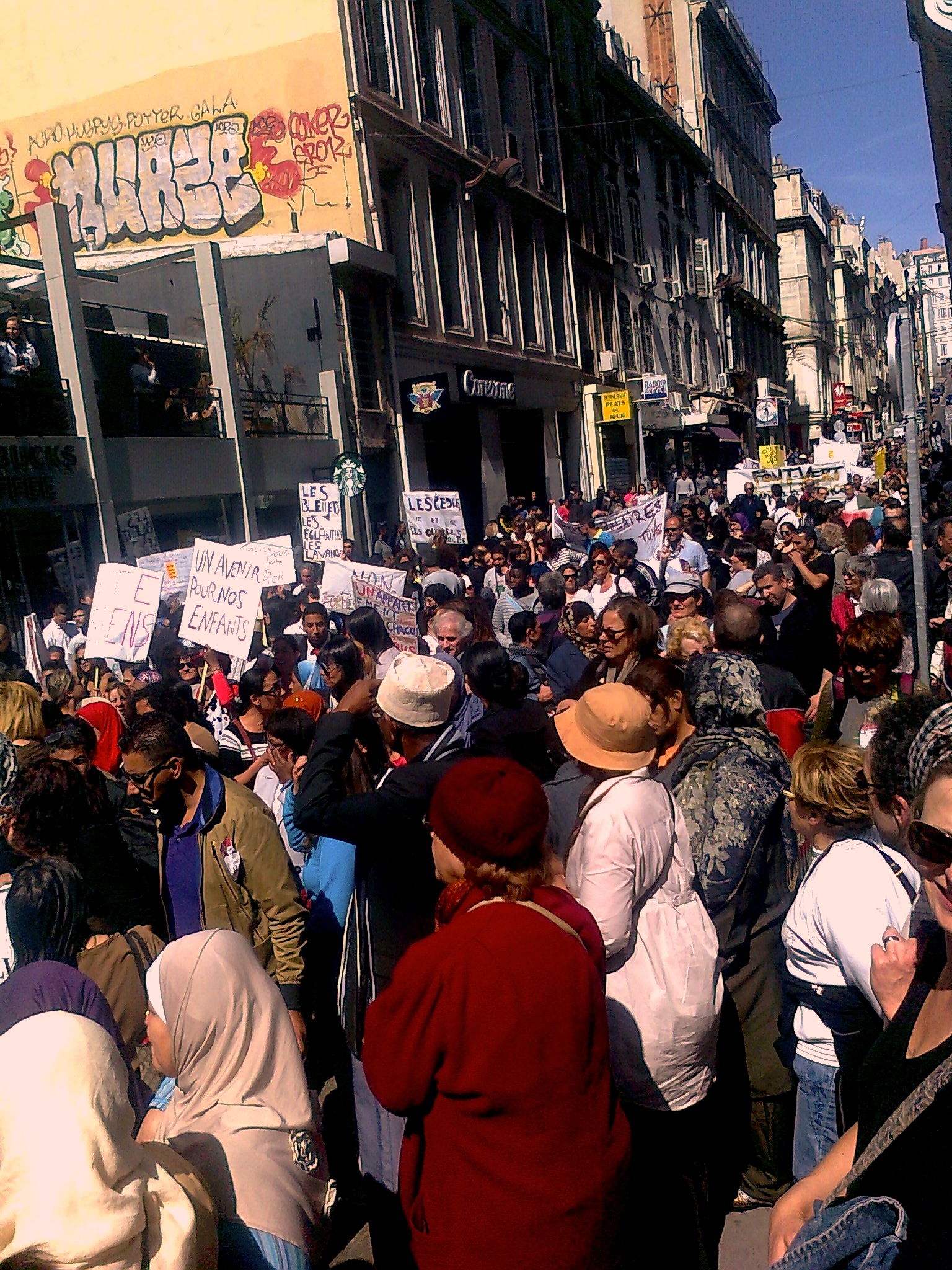 Samedi 1er juin, 14h. Au pied des escaliers de la gare St Charles, le boulevard d’Athènes se remplit peu à peu. Depuis trois mois, des habitants, des militants, des travailleurs sociaux, ont commencé à préparer ce rendez-vous.