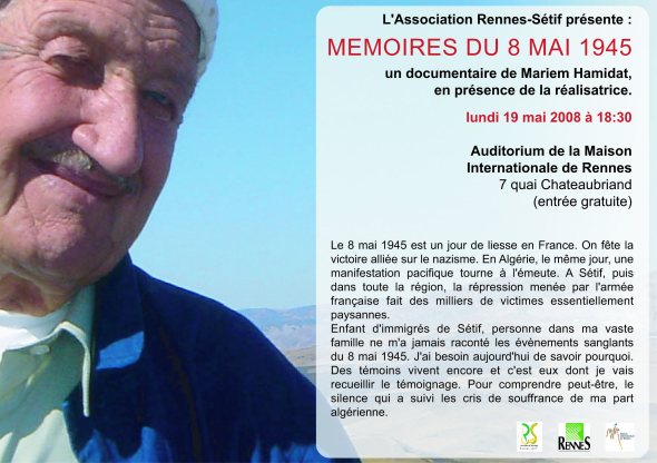 ‘‘Mémoires du 8 mai 1945‘‘, un documentaire de Mariem Hamidet, a été projeté mardi soir au Centre culturel algérien à Paris devant un public pris à la gorge par les témoignages accablants de personnes ayant vécu les terribles évènements qui avaient marqué deux mois durant une partie de l’Est algérien, notamment Sétif, Kherrata et Guelma.