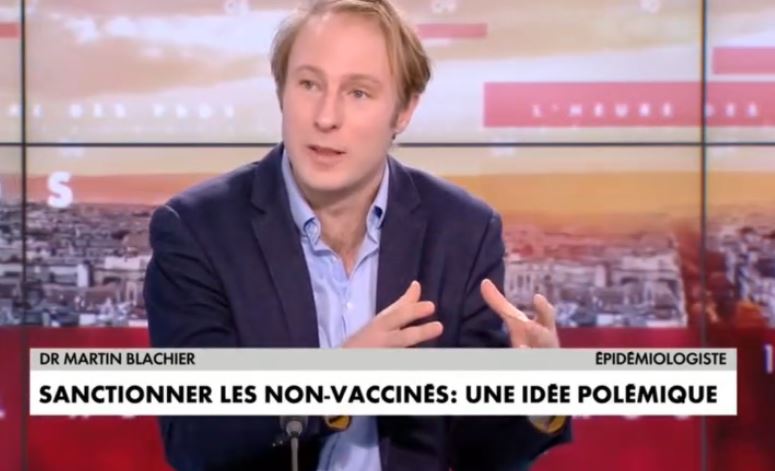 Barbara Lefebvre: «Pour toi Jérôme, Martin Blachier et Gérald Kierzek c'est des déinformateurs ?» Jérôme Marty: «C'est des cons ! Excusez-moi du terme.» Pascal Praud: «Est-ce que vous êtes un déinformateur, Martin Blachier ?» Martin Blachier: «C'est ce que dit Jérôme Marty. Mais je pense que j'ai un niveau d'information qui est bien supérieur au sien, tout simplement parce que c'est ma discipline, l'épidémiologie, de faire des modèles et ce n'est pas son cas. C'est de la cancel culture, comme je ne suis pas d'accord avec 100% de ce qu'il dit. Jérôme Marty a dit sur un plateau, en face de moi, à partir du moment où il y a une personne qui risquerait d'aller en réanimation, on devrait continuer de mettre des mesures restrictives dans toute la population. Qu'est-ce que vous voulez, ce sont des gens qui n'ont pas l'habitude de raisonner avec des nombres, avec des volumes, qui sont complètement en décalage avec la réalité. Et que, parce qu'ils ont tort et en plus, ils ne sont pas du tout suivis par le gouvernement, parce que, la bande des enfermistes que sont Jérôme Marty et ses amis...»
