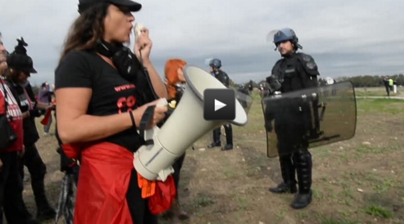 Les manifestants ont ensuite quitté les abords du stade pour tenter de pénétrer par les champs et les chemins dans le centre de la localité dont tous les accès étaient barrés par de hautes barrières en métal. Entre les mégaphones des manifestants et les gaz lacrymognènes des CRS, ce fut encore une histoire de pot de terre contre pot de fer...