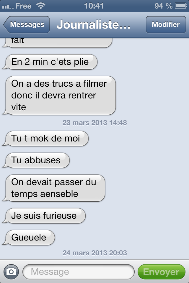 « TF1 assure que mes "accusations sont diffamatoires". Voici le SMS de la journaliste qui demande pendant le tournage de l'émission à Ludivine de "gueuler". En plus des fautes d'orthographe, elle dicte carrément les répliques... On continue ? »