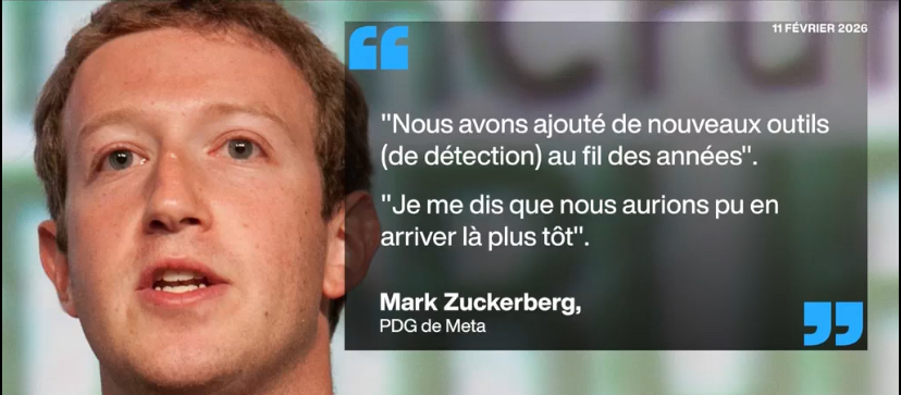 Mark Zuckerberg a comparu mercredi 18 février devant un jury de Los Angeles dans un procès qualifié d'historique. Le patron de Meta, maison-mère de Facebook, Instagram et WhatsApp, a été interrogé pendant près de huit heures sur les mécanismes d'addiction de ses plateformes, accusées d'avoir sciemment ciblé les jeunes utilisateurs.
