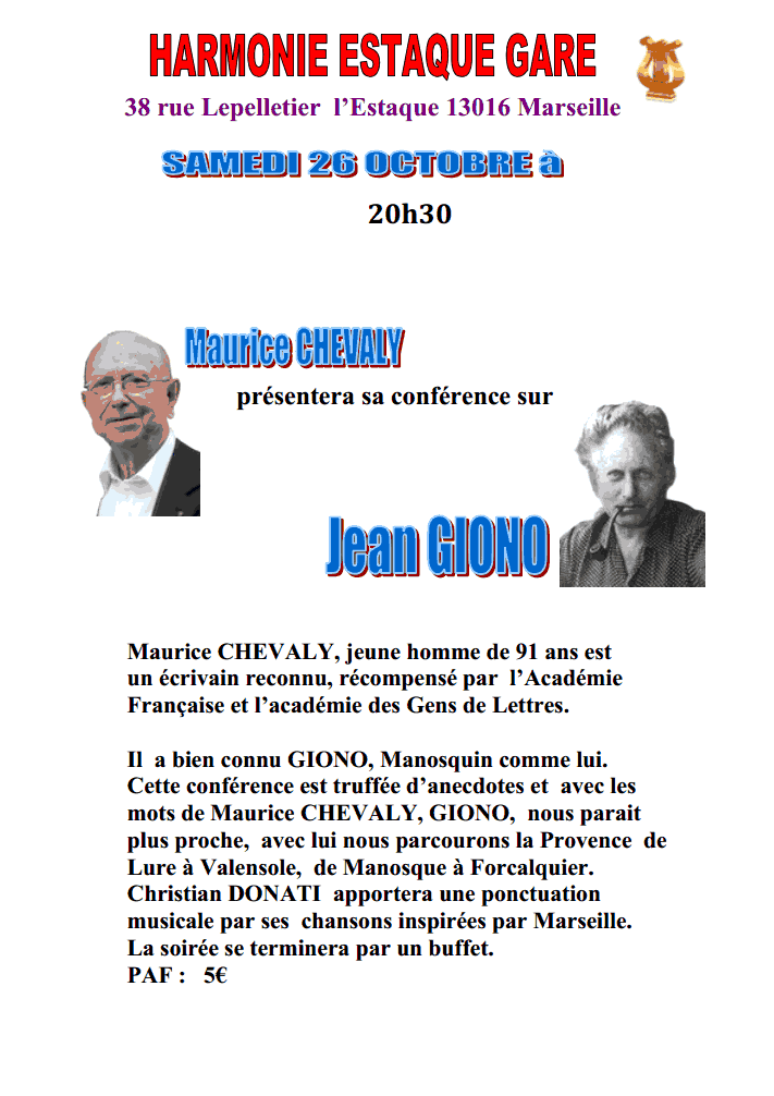 Marseille-Estaque: Conférence sur Jean Giono de Maurice Chevaly