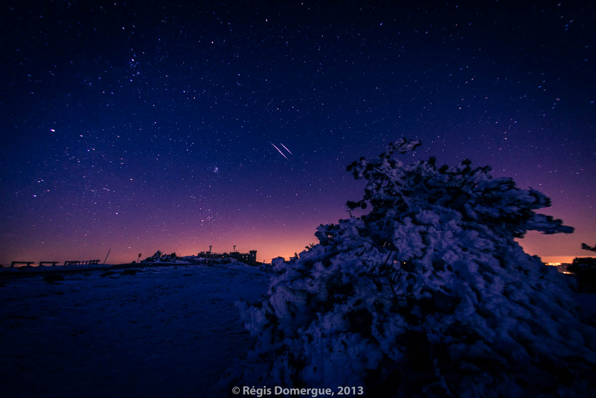 Un ciel bleu nuit rosé, des étoiles brillantes et un lourd manteau de neige glacée... Les photographies immortalisées par Régis Domergue au Mont Aigoual évoquent à elles-seules toute la magie scintillante de Noël dans laquelle nous vous laissons vous immerger !