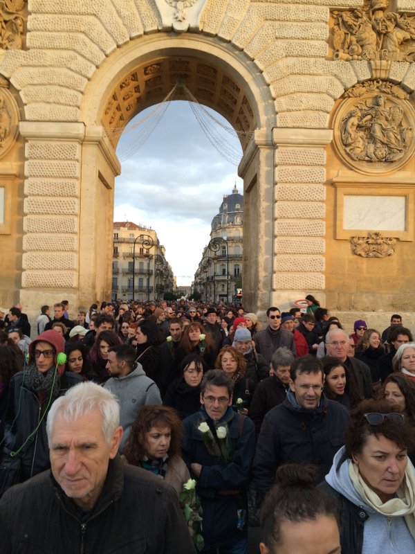 "Nous sommes tous unis. Hommage aux victimes, soutien aux familles, aux forces de l’ordre et aux services de secours". C’est derrière cette banderole que quelque 4000 personnes ont participé à la marche organisé aujourd’hui à Montpellier pour la paix et le respect des diversités.
