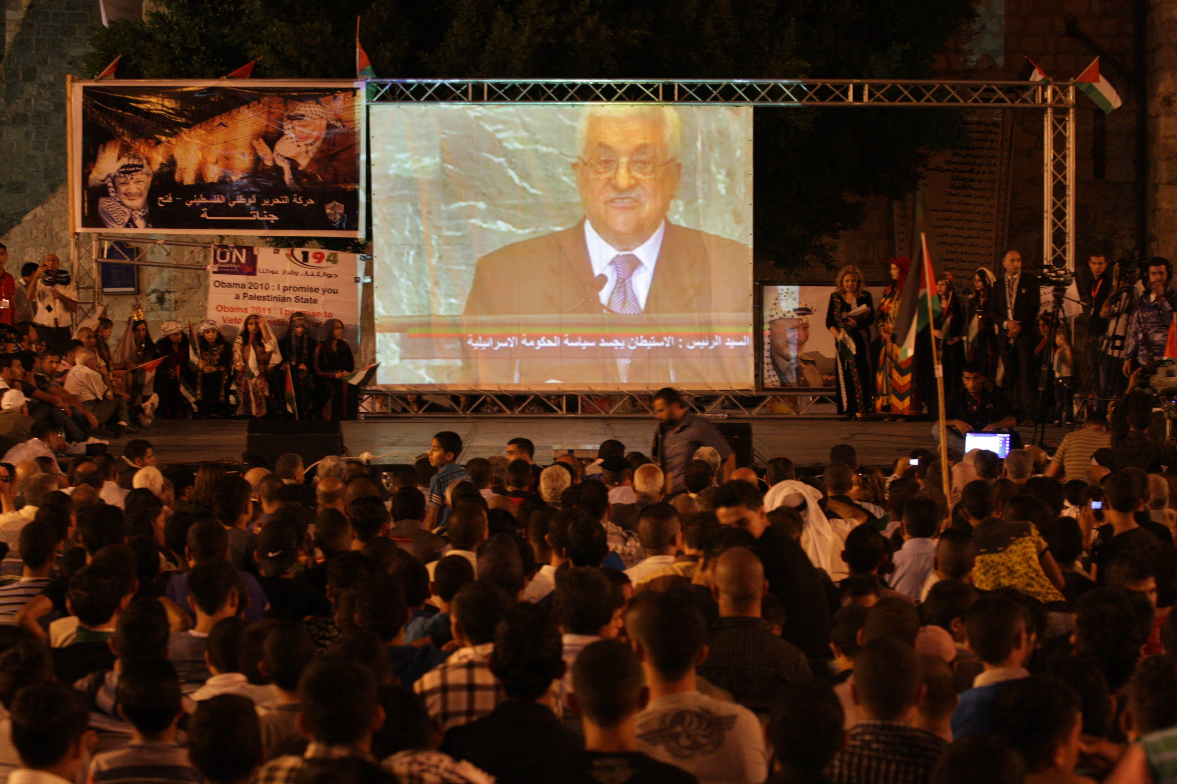 « Je voudrais vous informer que, avant de prononcer ce discours, j'ai, en ma capacité de président de l'Etat de Palestine et Président du Comité exécutif de l'Organisation de libération de la Palestine, soumis à M. Ban Ki-moon, secrétaire général des Nations Unies, une candidature pour l'admission de la Palestine sur la base des frontières du 4 juin 1967 avec Al-Quds Al-Sharif ( Jérusalem) comme capitale, en tant que membre à part entière des Nations Unies », a déclaré Mahmoud Abbas en brandissant une copie de cette demande d'adhésion sous les applaudissements de l'assistance.