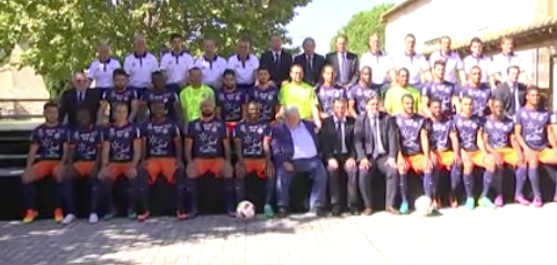 La traditionnelle photo de famille du MHSC était quelque peu contrastée, ce mardi 27 septembre, dans l'antre de Louis Nicollin, au Mas Saint Gabriel à Marsillargues, dans l’Hérault. Côté staff,  Loulou parle de "clowns grossièrement payés".