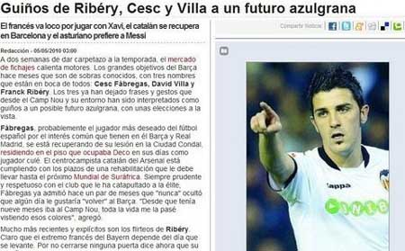 Le 10 mai, le «Sport» a révélé que l'équipe de Barcelone achètera au moins une star avant le 30 juin, David Villa (FC Valence), Cesc Fabregas (Arsenal) et Franck Ribéry (Bayern Munich) sont tous sur sa liste.