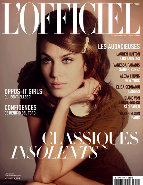 L'animatrice de télévision et ex-mannequin anglaise Alexa Chung se fait rétro pour le numéro d'août 2010 de L'Officiel.